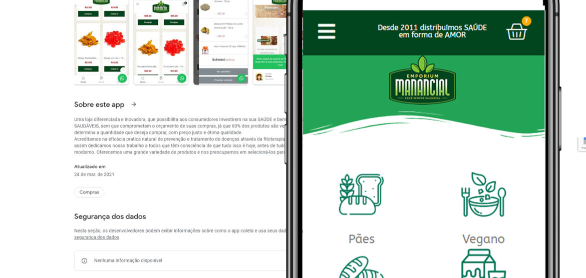 Desenvolvimento e Publicação do Aplicativo  Emporium manancial. Incluindo  serviços de desenvolvimento, implantação, licença de uso, treinamento e suporte.